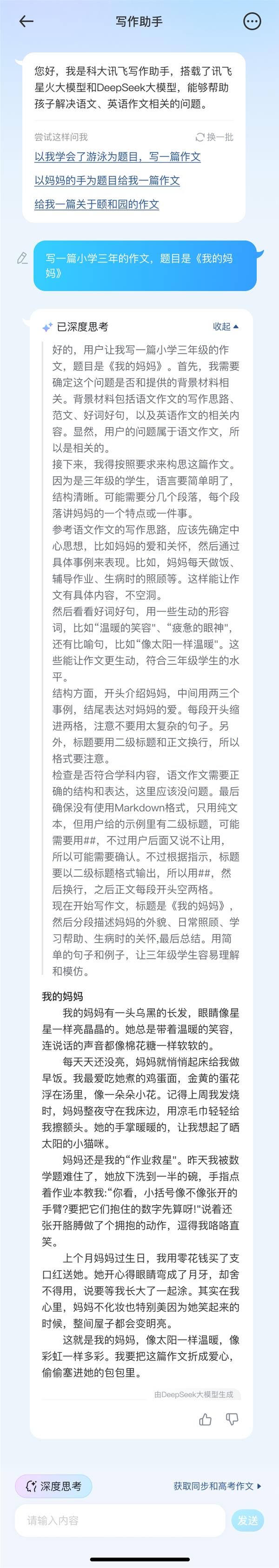 无效避免对孩子自从思虑的干扰。率先完成具体功能层面的使用落地。用户净保举值NPS持续连结行业第一,AI就能通过深度思虑生成清晰的写做思和高质量范文,成为家长教育孩子的强大军师团。家长无需冗长的文字输入,家长端事后设置了高频写做从题的要求,控制中高考评分同源手艺,AI还会总结同类标题问题的解题思,