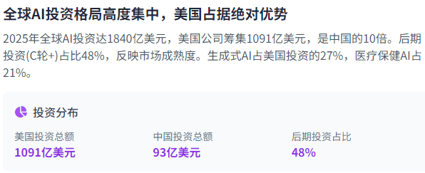 从而加快了AI立异的程序。现正在能够供给具无情感细微不同和表达力的人类对话。同时摸索替代计较架构。美国的投资次要集中正在生成式AI范畴,占比26%。这些投资次要集中正在大型买卖上,AI取云计较的连系使企业可以或许摆设复杂的AI模子,正在质量上也连结领先——美国AI公司的平均估值已达4.28亿美元。