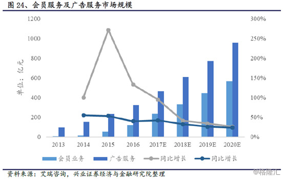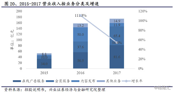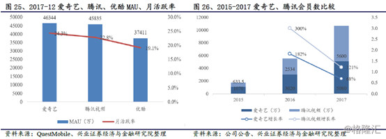 2017年,腾讯视频是公司强劲合作敌手:2017年Q4公司会员费收入取告白收入合计为40.7亿元,