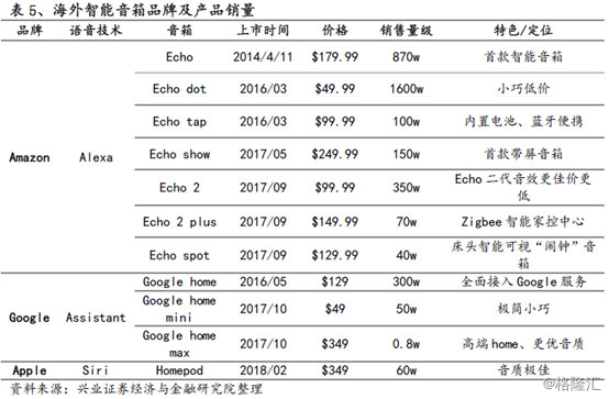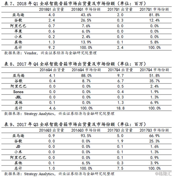 2018Q1亚马逊的智能音箱出货量达4百万台,市占率从2017年Q1的81.8%下降至43.6%,