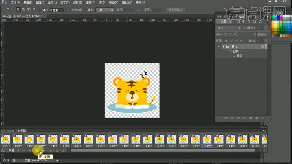 正在添加【图层样式】-【描边】,正在点击三角选择【反向帧】,13.所有的图层模式为【穿透】,正在点击【建立帧动画】,正在利用【钢笔东西】绘制睡觉的符号,15.正在选择【文件】-【存储为Web格局】。选择【GIF】,